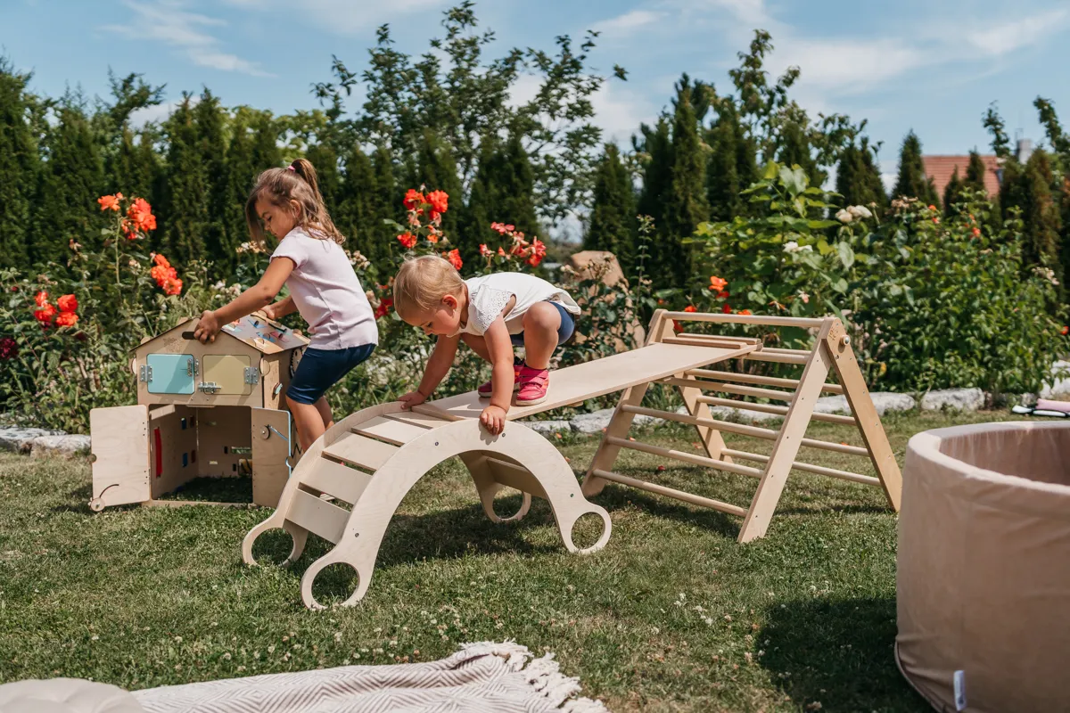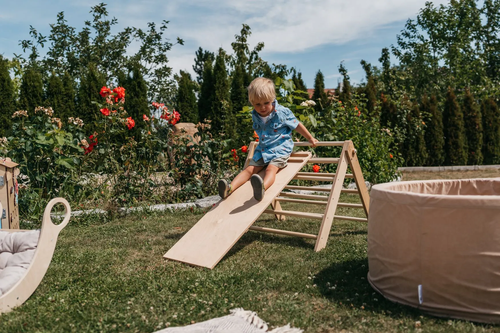 - Piklerové trojúhelník s klouzačkou/lezeckou stěnou